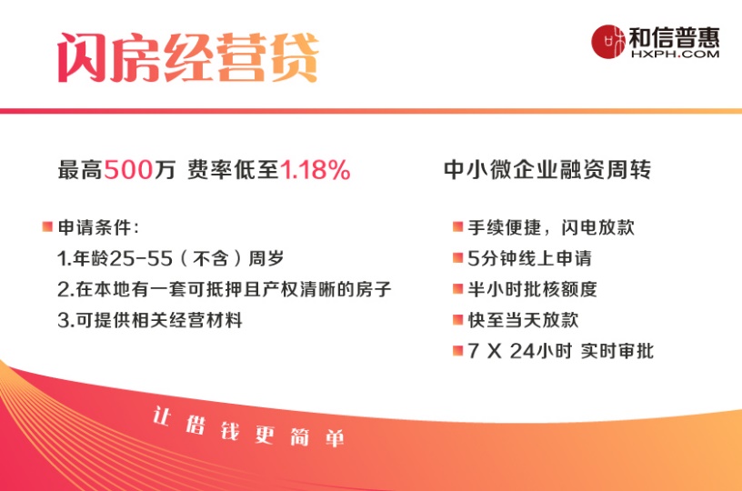 “‘闪房经营贷’是专为小微企业主设计的一款产品,最高有500万的授信额度。在企业信用不足以让他们获得银行或其他渠道资金的时候,和信普惠就成为他们很好的融资补充通道,一方面,我们希望作为小微企业成长道路上第一位融资支持者,为他们提供合适的普惠金融资金方案;另一方面,我们在整个贷款周期建立了完善的风控措施,能够将坏账风险降到最低。”一位和信普惠内部人士说道。无需实地看房,用户只需将所需材料上传,系统即可自动完成线上评估房屋价值,最快当天就能实现放款,极简的业务流程和高放款效率让“闪房经营贷”自上线起受到客户一致好评。截至目前,和信普惠房抵业务已在北京、南京、杭州、广州、深圳、东莞、济南、成都等23个城市开展。
